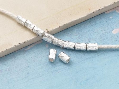 10 of Karen Hill Tribe Silver Hammered Tubular Beads 4x6mm.