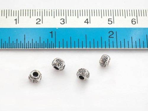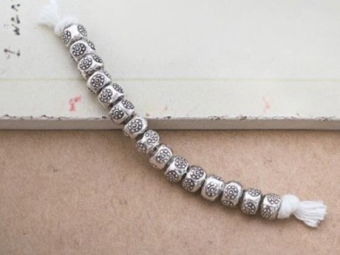 15 of Karen Hill Tribe Silver Daisy Imprint Beads 5x3.5 mm.