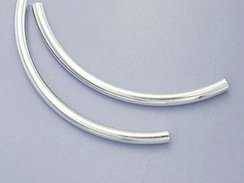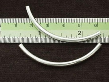 4 of 925 Sterling Silver Long Curved Tube Beads 3x50 mm.
