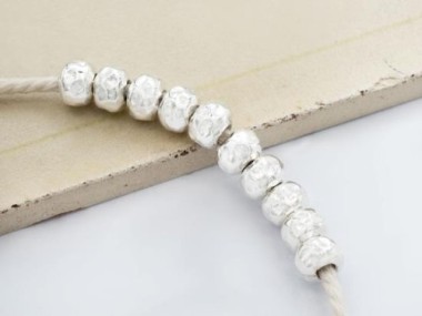 10 of Karen Hill Tribe Silver Hammered Rondelle Beads 6x4.5mm.