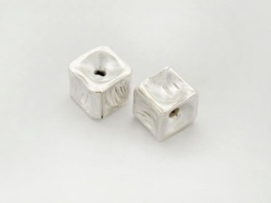 2 of Karen Hill Tribe Silver Cube Beads 8x9 mm.