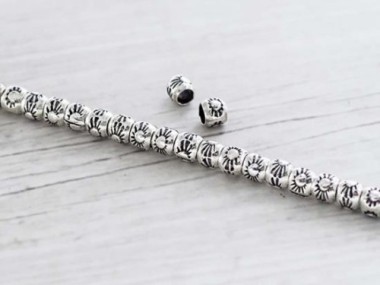 40 of Karen Hill Tribe Silver Daisy Imprint Beads 3x3.5mm.