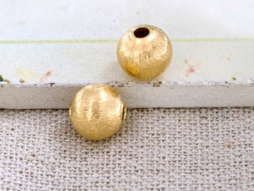 2 of 925 Karen Hill Tribe 24k Gold Vermeil Style Brushed Round Beads 8.5x8 mm.