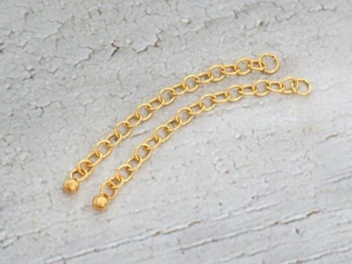 2 of 925 Sterling Silver Gold Vermeil Style Extension Chains 1.5 inches with Ball Charm.
