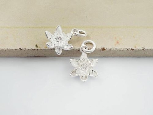 2 of 925 Sterling Silver Lotus Charms 11mm. Matte Finish.
