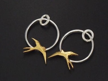 2 of 925 Sterling Silver Bird Charms 13.5mm. ,Two Tone Gold & Silver