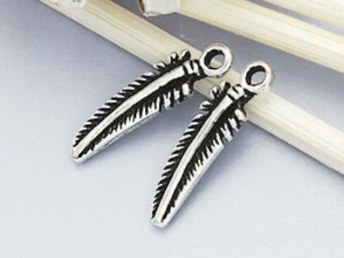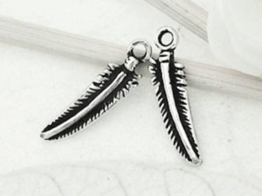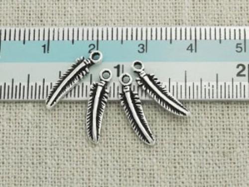 4 of 925 Sterling Silver Oxidized Feather Charms 4x15 mm.