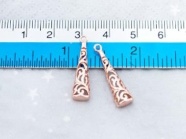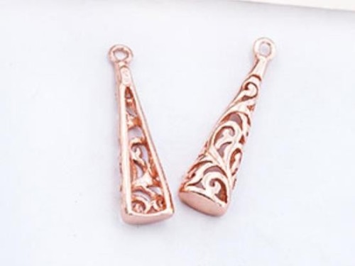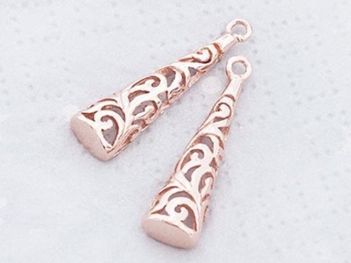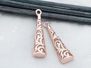 2 of 925 Sterling Silver Rose Gold Vermeil Style Filigree Cone Charms 6x20 mm.