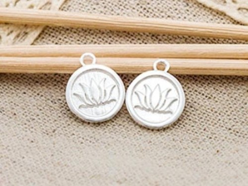 2 of 925 Sterling Silver Lotus Print Charms 10.7mm.