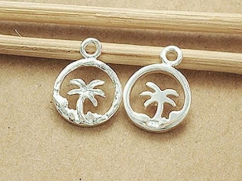 2 of 925 Sterling Silver Palm Tree Charms 10mm . , Polish Finished.