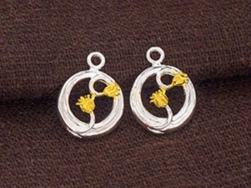 2 of 925 Sterling Silver Lily of the valley Charms 11.5 mm. Two Tone Gold & Silver