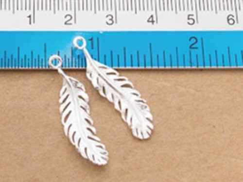 2 of 925 Sterling Silver Feather Charms 7.5x26 mm.