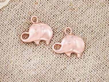 2 of 925 Sterling Silver Rose Gold Vermeil Style Elephant Charms 8x12 mm.