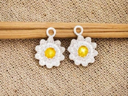 2 of 925 Sterling Silver Flower Charms, Gold plated pollen 10mm.