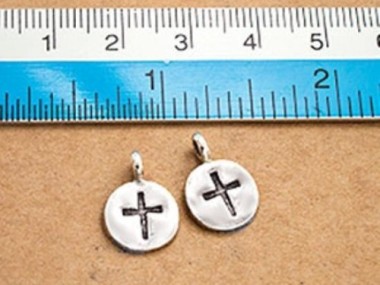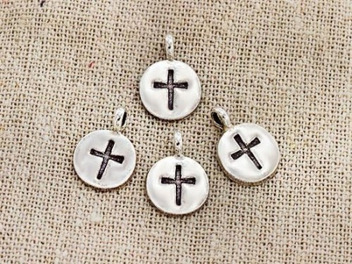 4 of Karen Hill Tribe Silver Cross Printed Circle Disc Charms 10.5mm.