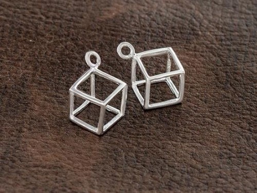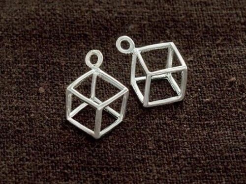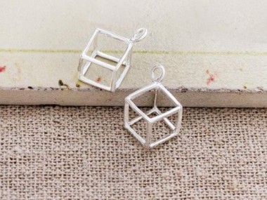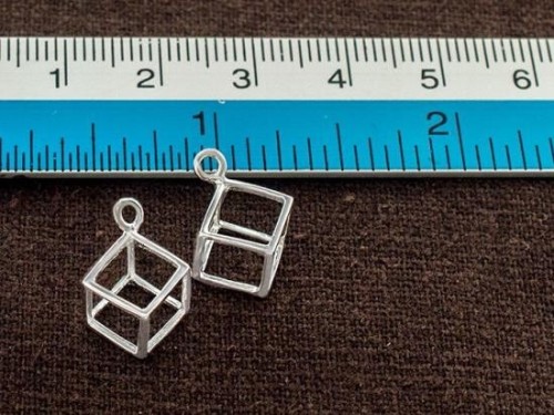2 of 925 Sterling Silver Cube Charms 10.3 mm.