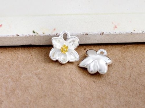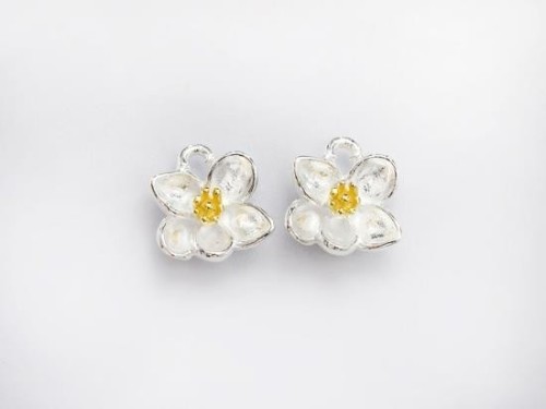 2 of 925 Sterling Silver Orchid Charms, Gold plated pollen 9x10mm.