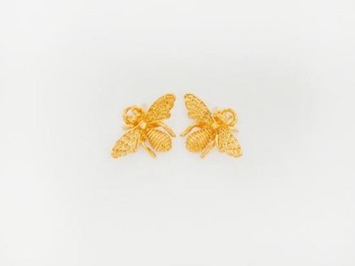 2 of 925 Sterling Silver Gold Vermeil Style Bee Charms 9x13 mm.