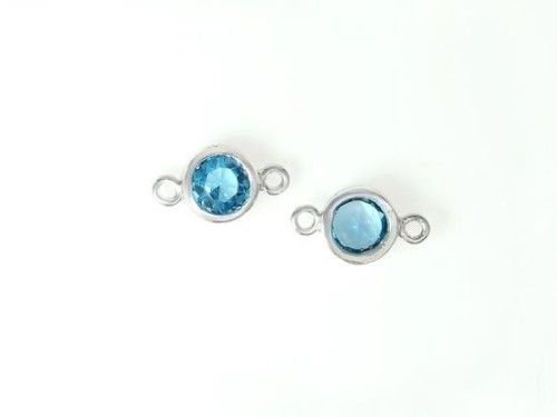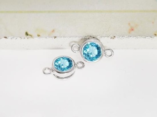 2 of Natural Round Swiss Blue Topaz & Sterling Silver Bezeled Connectors, Links 6 mm.