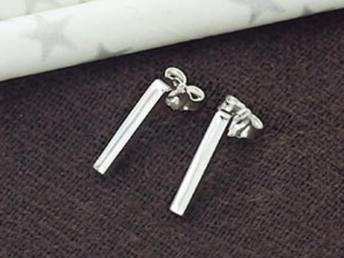 1 pair of 925 Sterling Silver Tiny Rectangle Stick Stud Earrings 2x12mm., Polish finished