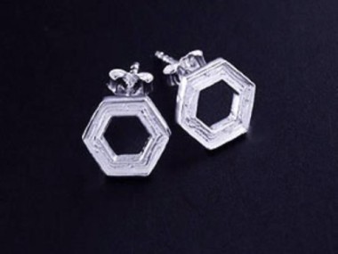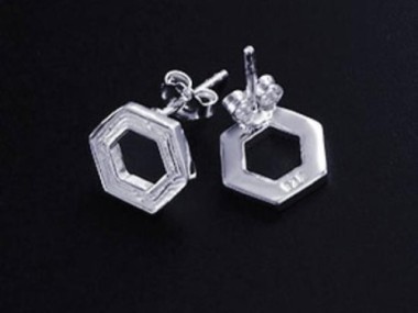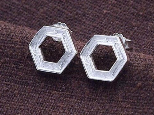 1 pair of 925 Sterling Silver Textured Hexagon Stud Earrings 10mm. minimalist earrings
