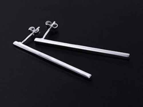 1 pair of 925 Sterling Silver Rectangle Stick Stud Earrings 2x40mm., Polish finish.