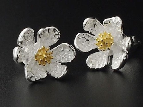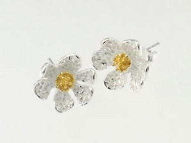 1 pair of 925 Sterling Silver Daisy Stud Earrings, Gold plated pollen 11mm.