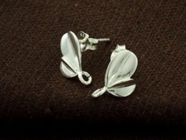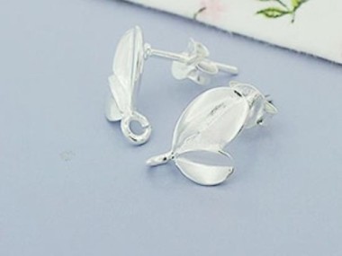 1 pair of 925 Sterling Silver Leaf Stud Earrings Post Findings 8x11mm. , Polish Finished