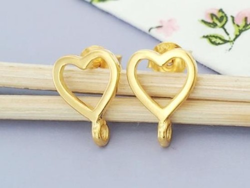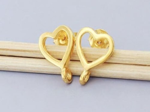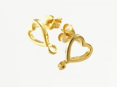 1 Pair of 925 Sterling Silver 24k Gold Vermeil Style Heart Earrings Post Findings. 8.5x9mm
