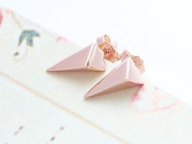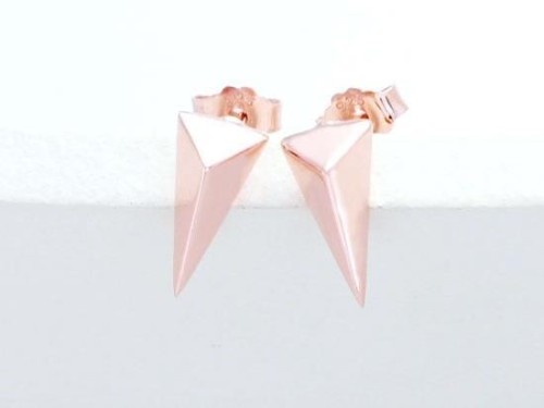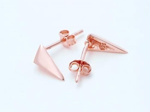 1 Pair of 925 Sterling Silver Rose Gold Vermeil Style Triangle Stud Earrings 5x10mm.
