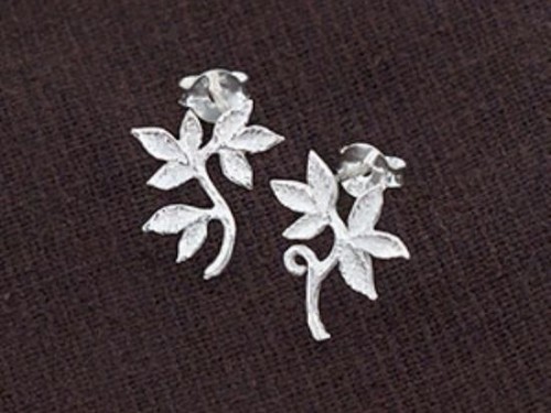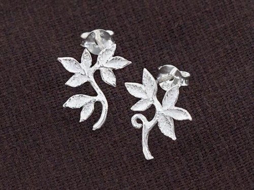 1 pair of 925 Sterling Silver Leaf Branch Stud Earrings 12x13.5mm. satin finished