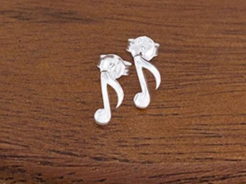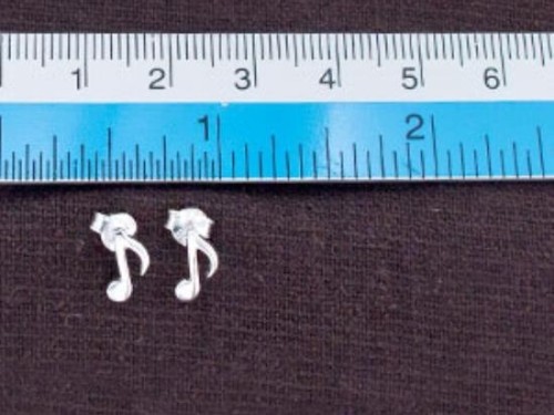 1 pair of 925 Sterling Silver Music Note Stud Earrings 4x9mm., Polish finish