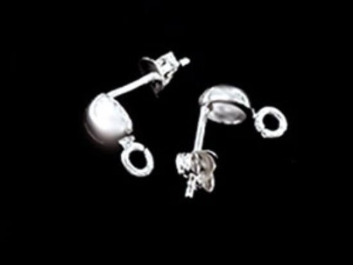 2 pairs of 925 Sterling Silver Post Stud Earrings Findings, 6mm Half Ball with Opened Loop
