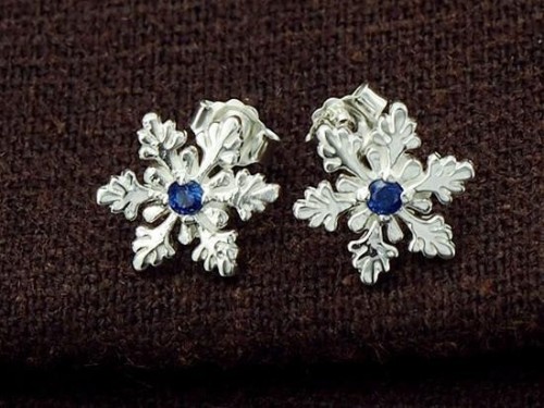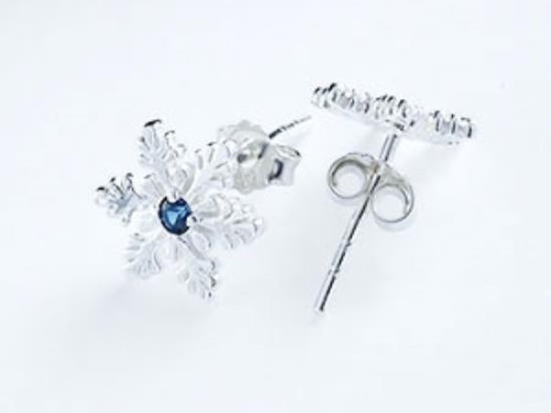 1 pair of 925 Sterling Silver Snowflake Stud Earrings, with Lab grown Sapphire .