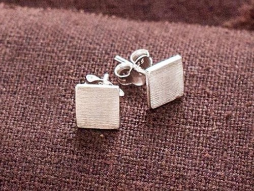 1 pair of 925 Sterling Silver Brushed Square Stud Earrings 6 mm. , minimalist earrings