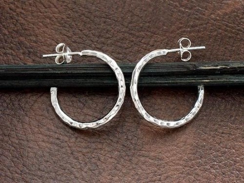 1 pair of 925 Sterling Silver Hammered Hoop Earrings 2x20 mm.