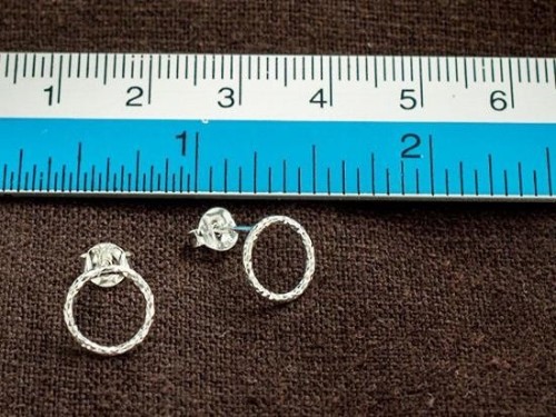 1 pair of 925 Sterling Silver Diamond Cut Circle Hoop Stud Post Earrings 9 mm.