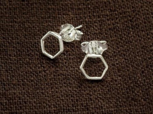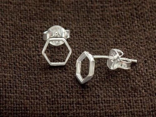 1 pair of 925 Sterling Silver Tiny Hexagon Stud Earrings 6mm. minimalist earrings , Polish Finished