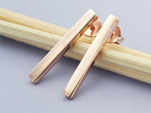 1 Pair of 925 Sterling Silver Rose Gold Vermeil Style Bar Stud Earrings. 2.7x20 mm.