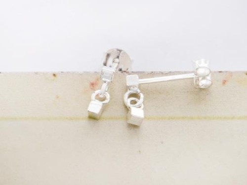 1 pair of 925 Sterling Silver Tiny Cube Stud Earrings 2.2 mm, minimalist earrings