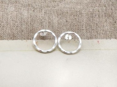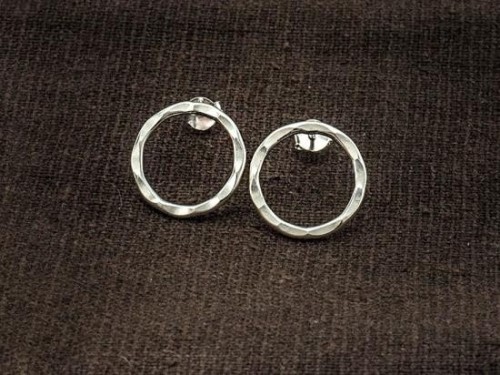 1 pair of 925 Sterling Silver Hammered Circle Stud Earrings 15mm. minimalist earrings