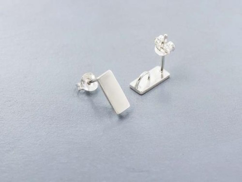 1 pair of 925 Sterling Silver Rectangle Bar Stud Earrings Post Findings 4.5x10mm. with Opened Loop.