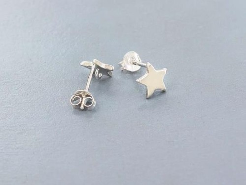 1 pair of 925 Sterling Silver Star Stud Earrings Post Findings 8mm. with Opened Loop.