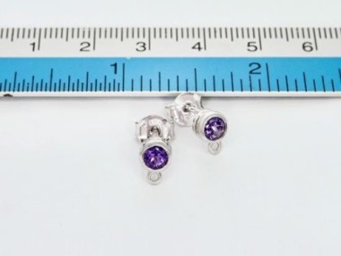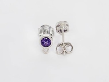 1 Pair of Natural Round Amethyst & Sterling Silver Bezeled Stud Earrings Post Findings 5 mm.