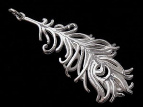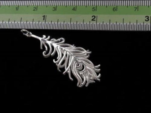 1 of 925 Sterling Silver Peacock Feather Charm 15x41mm. Polish Finished.