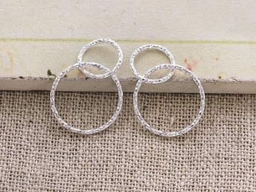 4 of 925 Sterling Silver Double Diamond Cut Circle Rings Charms Links. Connectors 20x14.5 mm.