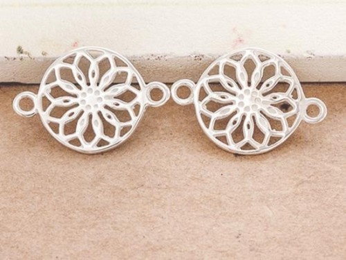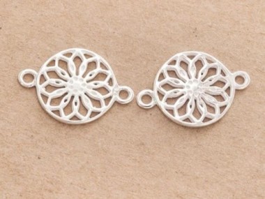 2 of 925 Sterling Silver filigree Flower Connectors, Links 14mm.