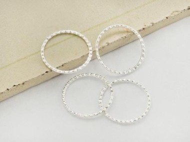 4 of 925 Sterling Silver Textured Circle Closed Rings, Connectors 18x1mm.