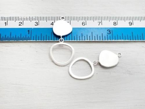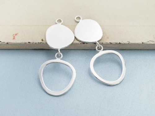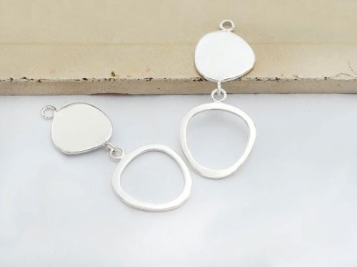 2 of 925 Sterling Silver Double Pebble Disc Links, Pendants 15x32 mm.