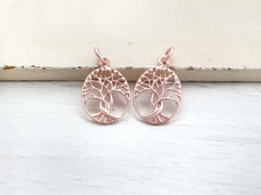 2 of 925 Sterling Silver Rose Gold Vermeil Style Tree of Life Pendants 13x16 mm.